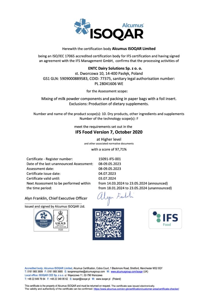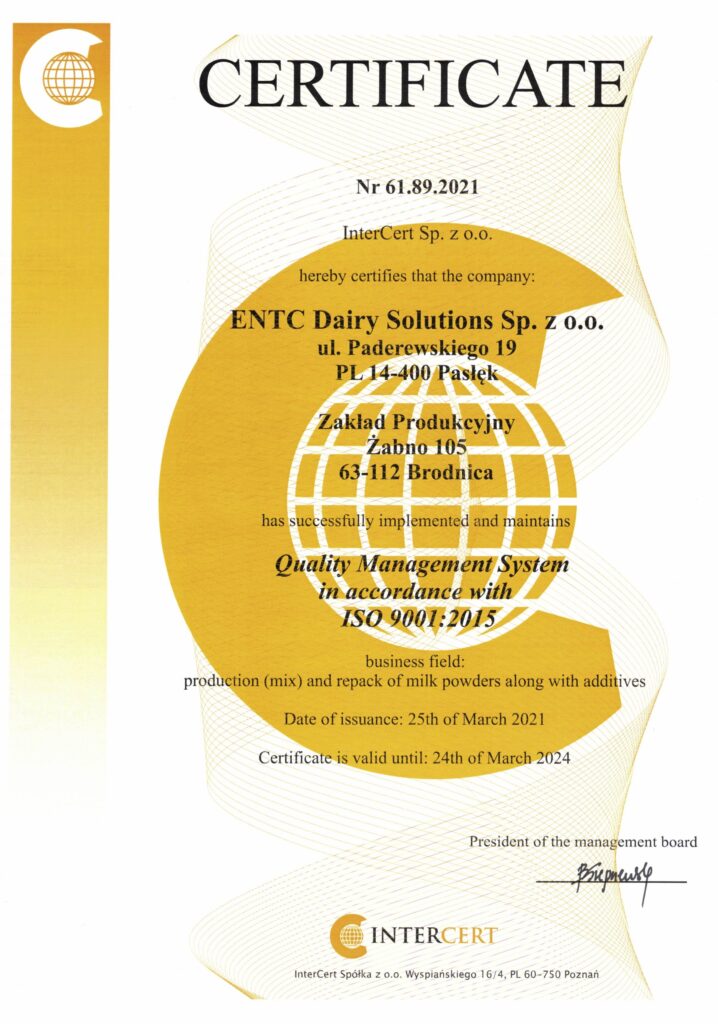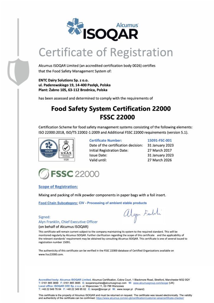 Comprehensive quality management system that is certified to ISO 9001, ISO 22000, and GMP standards.
